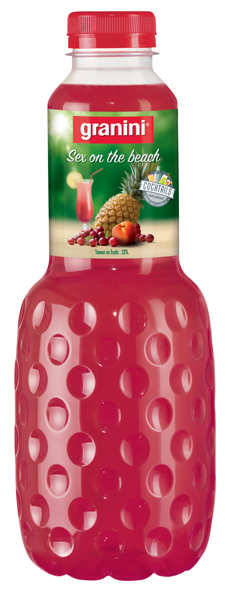 L’alliance de la pêche, de l’ananas et de la cranberry pour un cocktail doux reconnu et apprécié des consommateurs. Rajouter 4cl de vodka au 12cl de prémix granini, des glaçons pour obtenir ce cocktail classique. Il est aussi délicieux sans alcool avec de la glace pilée. Boisson aux fruits, saveur cranberry - pêche. Teneur en fruits: 33 %.